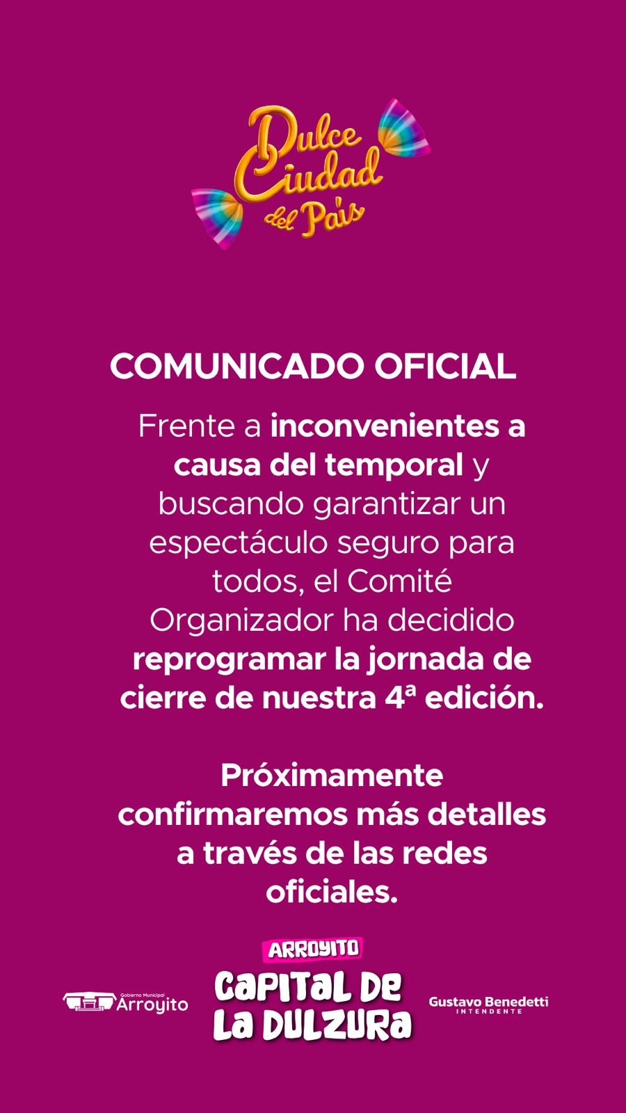 Arroyito: se reprogramó el cierra de la Fiesta de la Dulce Ciudad del País Ver mas 15 de febrero de 2026