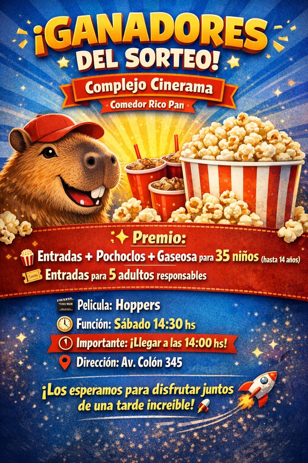 Complejo Cinerama le cumple el sueño a los niños del Comedor Rico Pan: peli, pochoclo y gaseosa gratis (una tarde inolvidable) Ver mas 19 de marzo de 2026