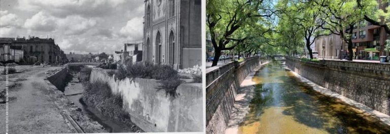 Fondo documental del Ministerio de Obras Públicas, Dirección General de Hidráulica del Archivo Histórico. Se exhibe la Sección Construcciones, sobre Sistematización del Arroyo La Cañada. Tramo II. Pavimentación, desagües y revestimiento de barandas. Diciembre 1946.