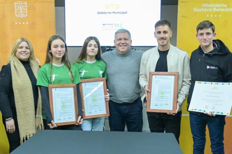 El Gobierno Municipal informa que en el día de hoy, el intendente Gustavo Benedetti, junto al área de Deporte y Turismo, hizo entrega de reconocimientos a deportistas de la ciudad. Además, mediante decreto, declaró un nuevo embajador deportivo.