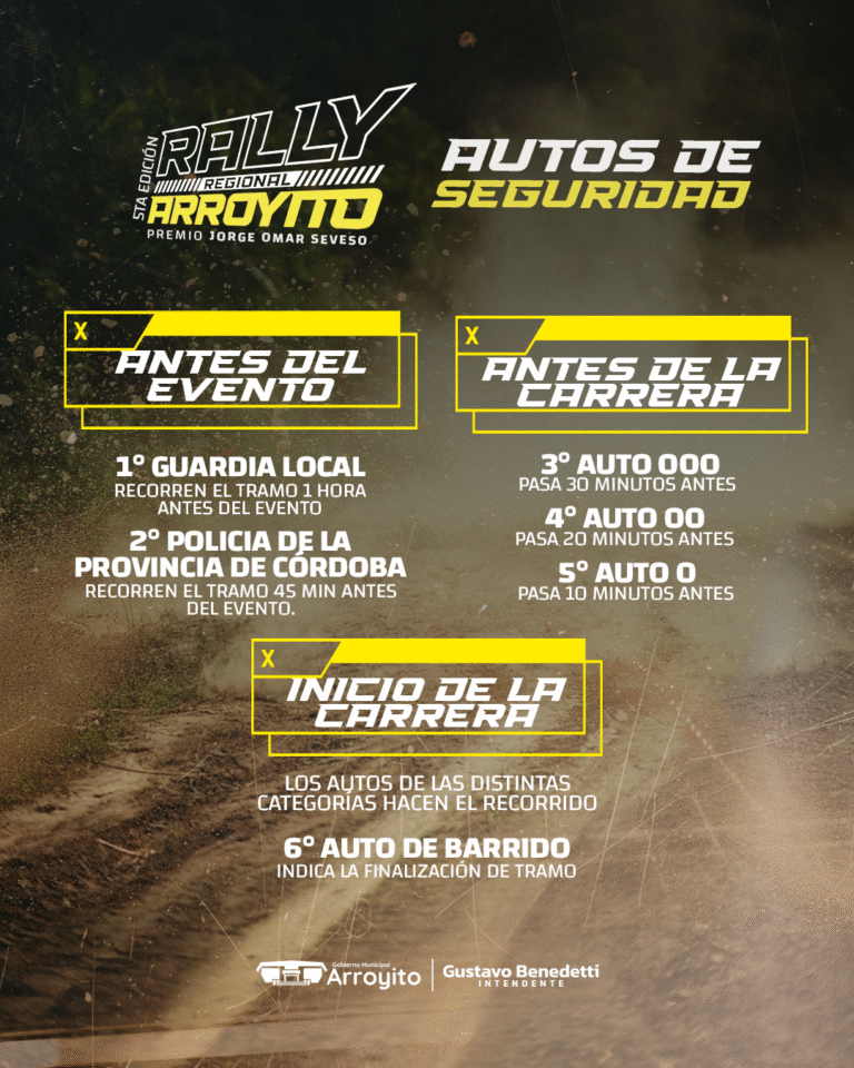 Rally Regional Arroyito: cómo funcionarán los autos de seguridad