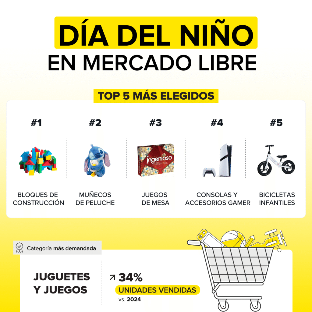 La categoría de Juguetes y Juegos, la más demandada en ésta fecha, registra un crecimiento del 32% en unidades vendidas con respecto al mismo período del año pasado. Dentro de la vertical, los bloques de construcción crecieron un +95%; los peluches +79% y los Juegos de mesa +63% unidades frente al mismo período en 2024.