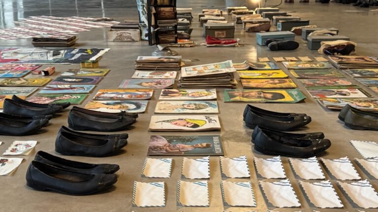 Matilde Leblebidjian: El Centro Cultural es un espacio abierto al público , y muchas veces él mismo público se sorprende al encontrar a la artista ahí para conversar. Percibo mucha curiosidad por el origen de los objetos, por sus historias. En el texto curatorial traté de contar algo de eso, pero en el intercambio directo surgen otras cosas. Recuerdo una señora que me contó que no podía desprenderse de sus cosas por el valor afectivo que tenían, y sentí que la obra la interpelaba desde ahí y desde muchos lugares más. También muchas personas mayores se conmueven al reconocer objetos que tuvieron o vieron en su infancia. Ese tipo de encuentro me interesa mucho, porque abre otros sentidos, incluso fuera del campo del arte. Me gusta ese intercambio que se genera en las visitas, porque aparecen sugerencias y lecturas desde miradas ajenas que me aportan muchísimo, cosas que una misma no ve en el propio proceso.