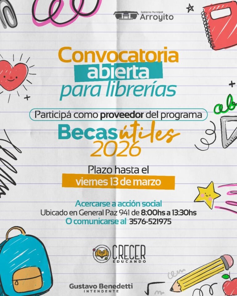 El Gobierno Municipal continúa trabajando en el análisis de las solicitudes presentadas para el programa Becas Útiles, una iniciativa que acompaña a las familias de Arroyito, El Fuertecito y La Curva en la compra de útiles escolares.