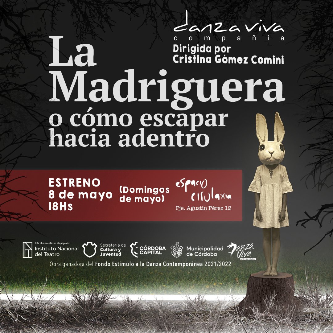 Ingresá a la web: www.provisus.com.ar Previous Next Danza Viva presenta «La Madriguera, o cómo escapar hacia adentro» Este domingo 8 de mayo a las 18 horas se estrena La Madriguera, o cómo escapar hacia adentro, creación de la coreógrafa Cristina Gómez Comini. El estreno tendrá lugar en el Espacio Cirulaxia (Pasaje Agustín Pérez 12, Córdoba … Leer más