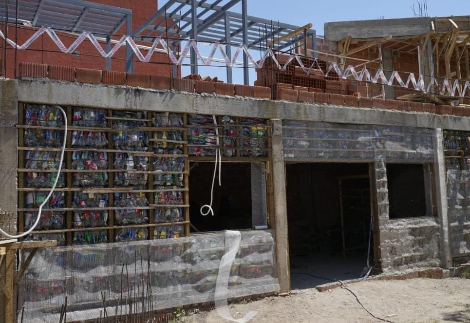 Con botellas recicladas se levantan las paredes de un Centro Vecinal